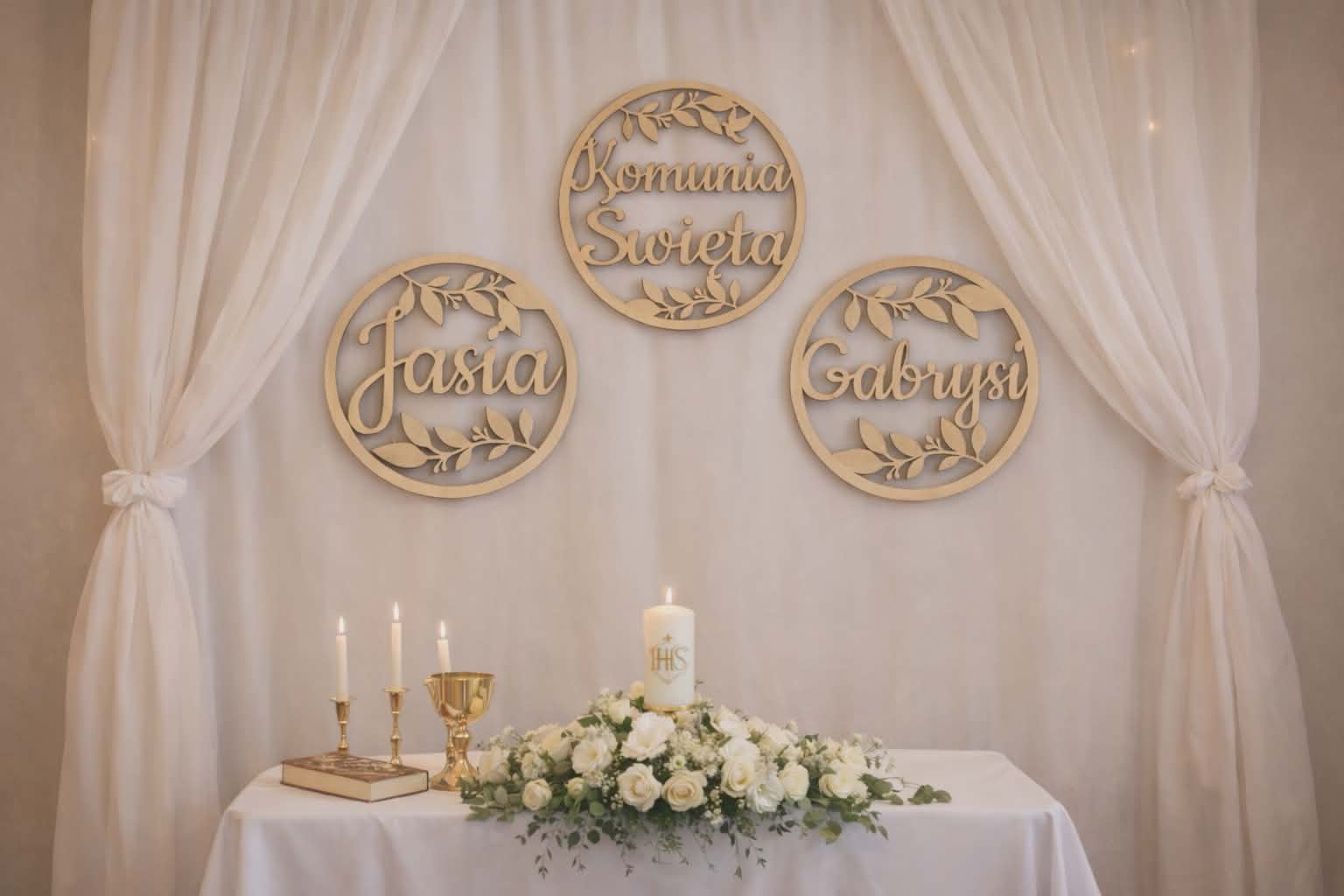 tablica powitalna na komunię z motywem roślinnym w 3 kolorach do wyboru