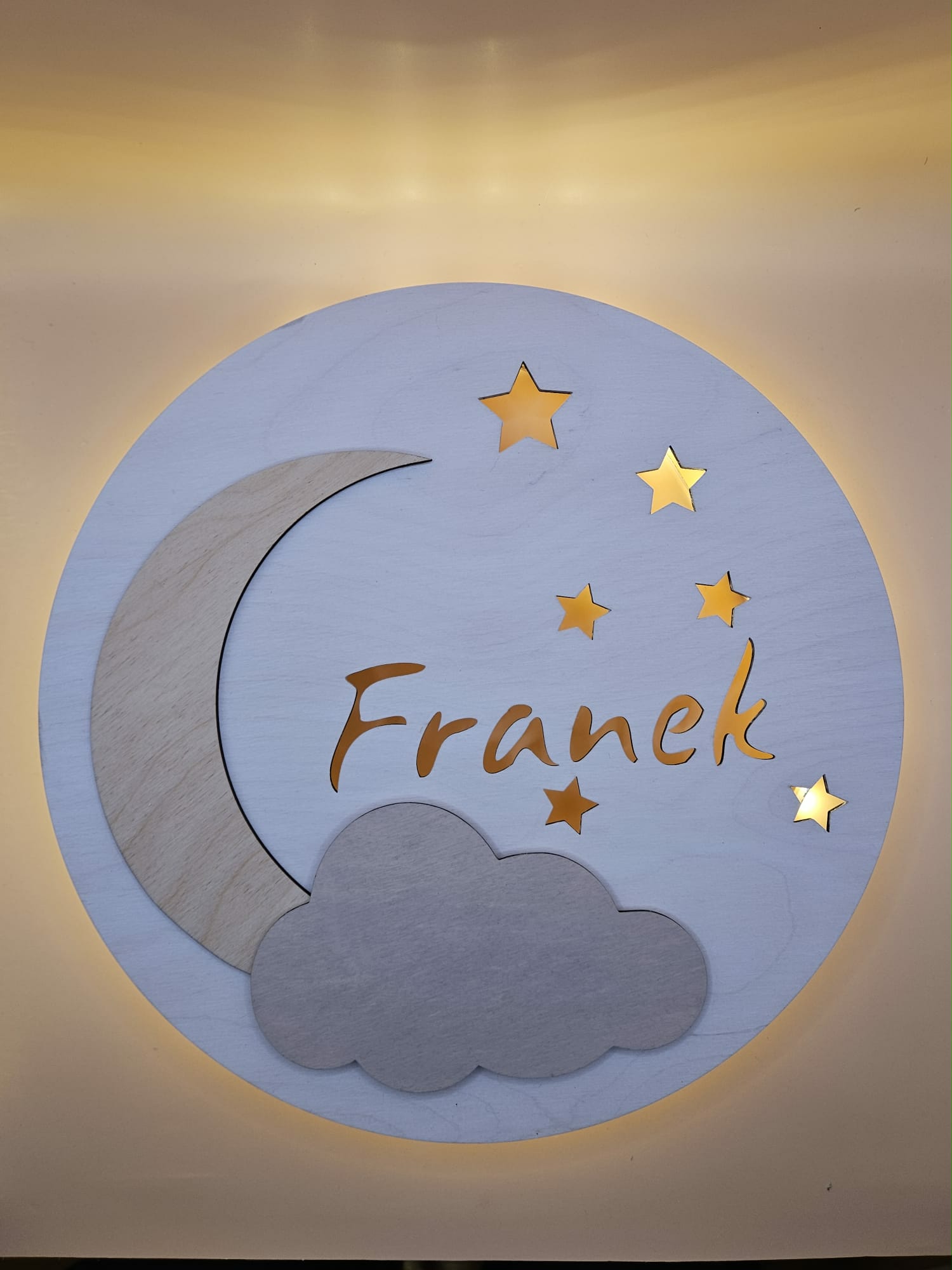 Personalizowana, drewniana lampka led z imieniem Twojego dziecka lub dowolnym napisem.