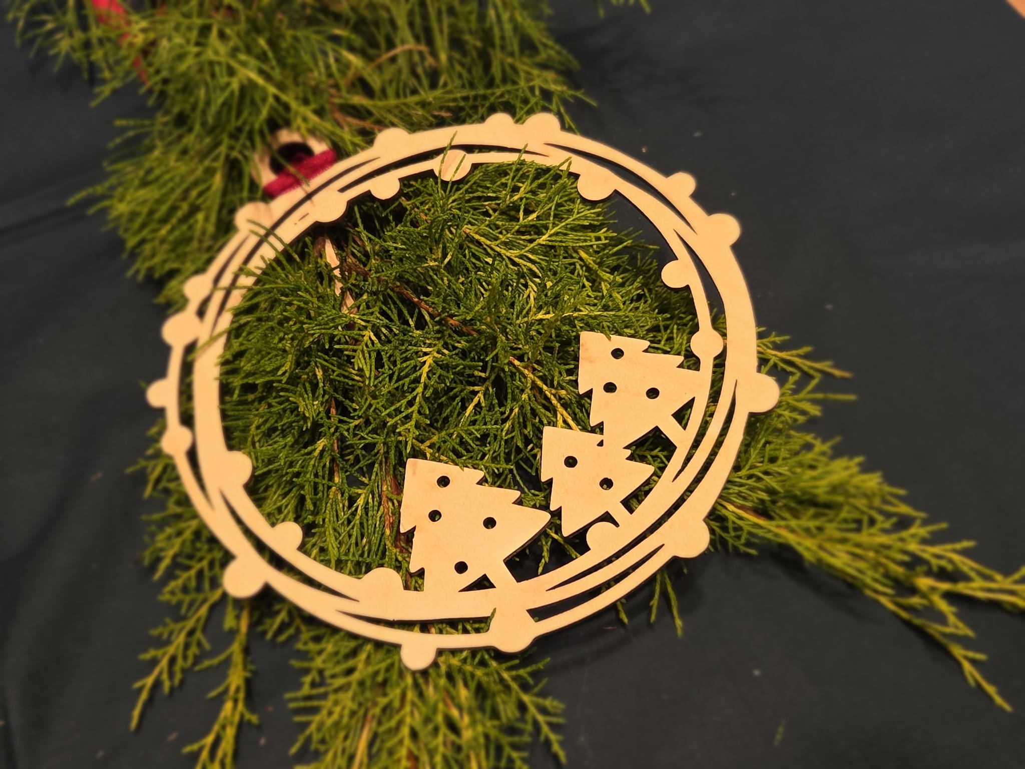 drewniane, ażurowe koło ze sklejki to idealna ozdoba świąteczna