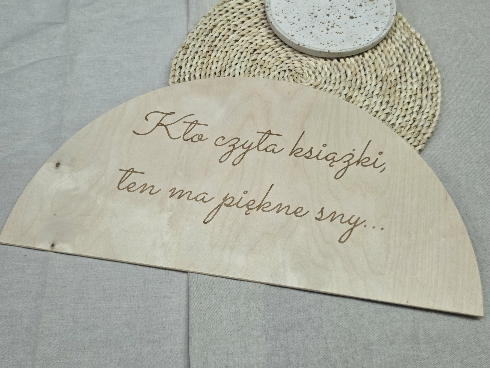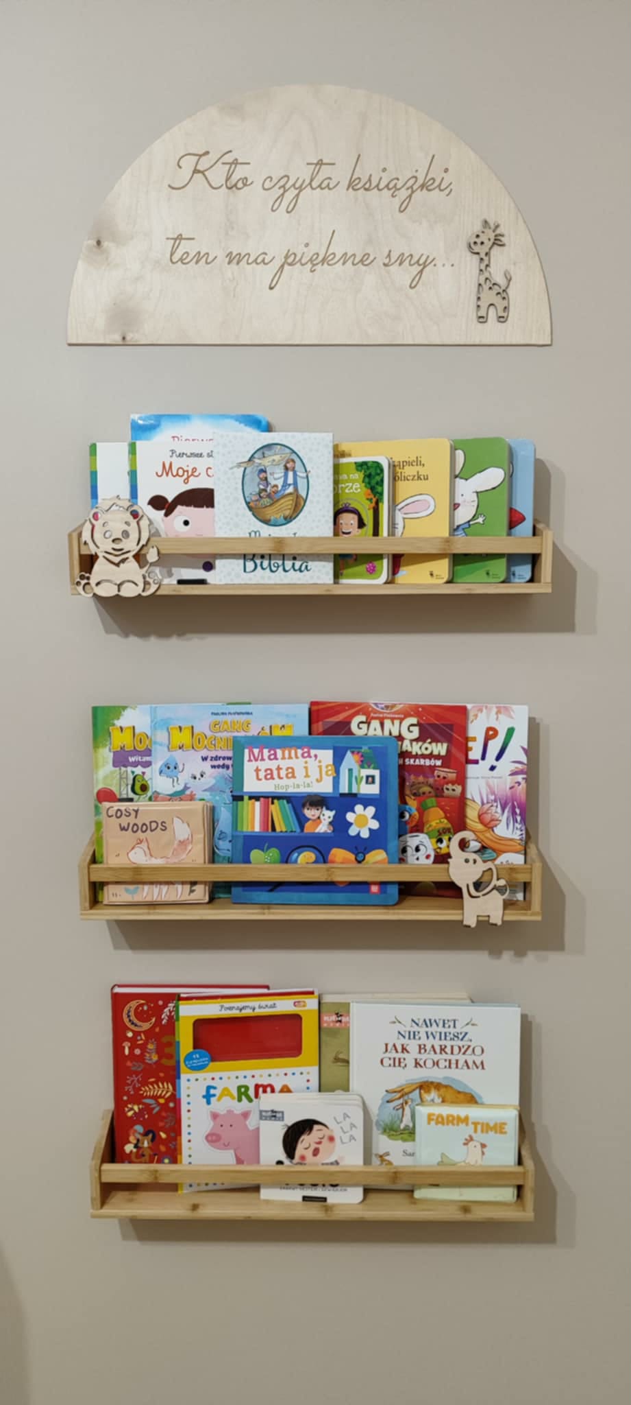 Drewniana tabliczka z oznaczeniem biblioteczki to uroczy dodatek do pokoju dziecka. Idealna do oznaczenia półki z ulubionymi książkami malucha.